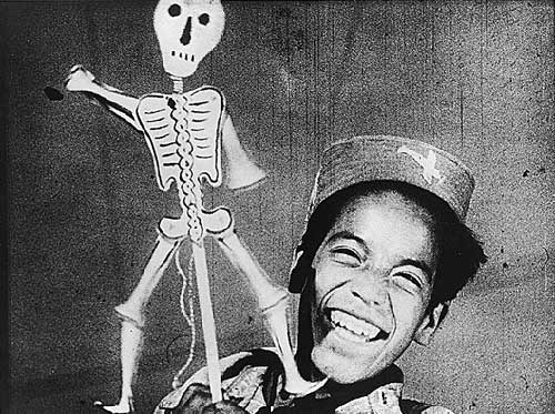 El mural, por ejemplo, muestra a la policía gubernamental con máscaras de gas golpeando y disparando a los trabajadores en huelga frente a tanques con cruces que se transforman en esvásticas. Esto está muy lejos del epílogo de Eisenstein. Después de “Soldaderas”, un segmento no filmado inicialmente para celebrar a las mujeres luchadoras de la revolución, Eisenstein muestra una celebración del “Día de los Muertos”. El pueblo mexicano se ríe de la muerte, los ricos son representados como reliquias esqueléticas y el último plano muestra a un niño sonriente que el narrador sugiere que pueda ser un futuro Soldado. Pero Eisenstein no es un hombre ingenuo. Era consciente de las injusticias que se cometían en México.