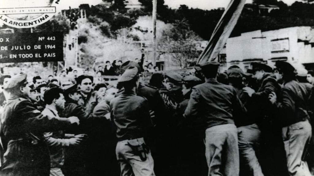 Aun así, Solanas entiende que, incluso con estas convincentes comparaciones históricas y globales, la mayoría de la gente quiere encontrar una forma legal y pacífica de ganar. A los espectadores indecisos, les ofrece la provocación: ¿y si ya se ha ejercido la violencia legal sobre el pueblo argentino? El bombardeo por parte de la Marina a la Plaza de Mayo, en junio de 1955, no sólo logró su objetivo de forzar la salida de Perón, sino que mató a 300 civiles en el camino. Más tarde, su ideología fue prohibida y los hombres que lo defendieron a él y a su constitución legal fueron ejecutados sumariamente sin juicio. Cuando Arturo Frondizi ganó la presidencia con el apoyo de Perón, no consiguió ningún cambio sostenible e incluso fue forzado a bloquear la elección del líder sindical Andrés Framini para la gobernación de Buenos Aires ante la presión militar.