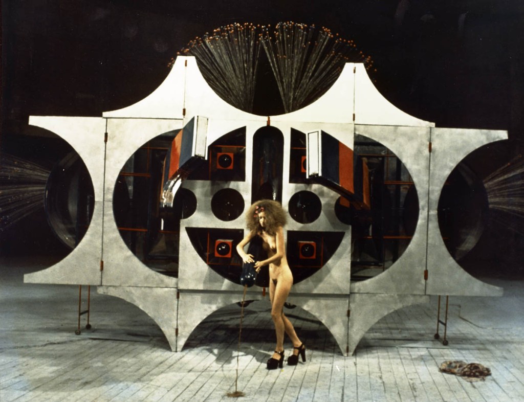 On Venus, we meet a businessman specializing in the beauty industry. His innovative ideas force people to think they need to buy plastic molds of the perfect body parts and even in death, people get technological makeovers so their corpses can remain animated to kiss their mourners, bless themselves, or even have sex. The modern world’s obsession with robots is severely ridiculed by Jodorowsky when on another planet, it is revealed a sex toy magnate has created a giant robot vagina that is stimulated by a giant metal rod. Upon climax, the machine opens up and a robot baby is born, allowing the cycle of love to continue.