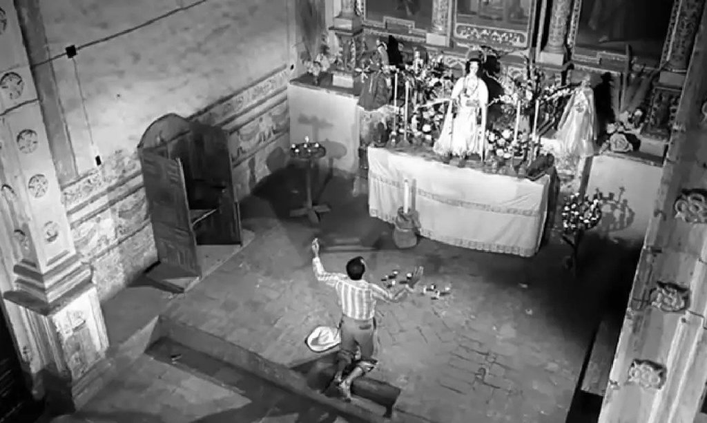 But still, Alcoriza gives us room to sympathize with Father Aurelio. When talking to the men who have been publicly shamed for not contributing to the price of the pearl, he tells them that as a priest he has to be severe, but as a man, he is very understanding. The priesthood only creates a barrier for him to understand the common man and so, through no fault of his own, he will never be able to connect to or move these people. The only characters in the film who are truly lampooned and caricatured are the rich tourists that come to the town. We see them force Eufemio’s son to perform tricks for them and later when a group of American tourists visit the Tlayucan church, they tattle on Eufemio for stealing the pearl. They may mean well, but these tourists only cause trouble.